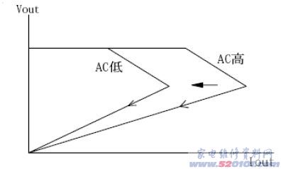 当检出电阻R1的电压达到OCP端子的门坎电压Vocp=0.77V(TYP)时,MOSFET被关断。过电流保护电路动作时,副边的输出特性如图2-10所示。过负载状态下,如果输出电压降低,原边辅助绕组电压也与之成比例的降低。因此,Vcc端子电压降到动作停止电压以下时,电路动作停止。这种状态时,电路消耗电流减少(电路阻抗变为高阻),使起动电路导通,Vcc端子电压由于起动电路供给的定电流而上升,达到动作开始电压时再次启动,进入UVLO的间隙振荡动作状态。另外,如果是输出绕阻较多,耦合不充分的变压器,可能会出现过负载状态时,原边辅助绕组电压不随输出电压降低而降低,而不致发生间隙振荡动作的情况。这种情况虽然没有发生间隙振荡动作,但可以通过过负载保护电路(OLP)进行保护。
