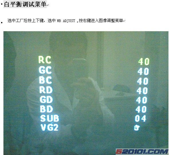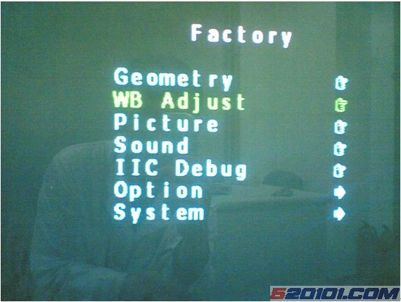 在平衡下按遥控器数字键输入密码:0532即可进入调整菜单,调试工厂