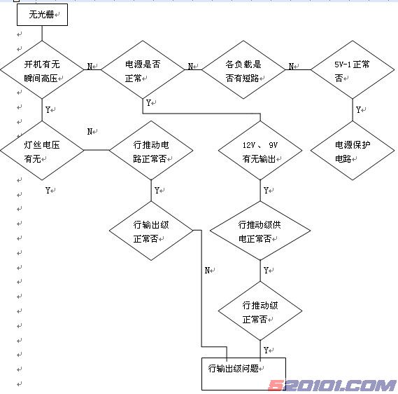 视放板上还同时具有关机RGB截至电路,正常工作时,C901充电到11.3V,三极管V511A不导通,V501A基极低电平,集电极高电平,VD901A,VD902A,VD903A均不导通。关机时,12V降到0V,C901仍然保持11V,缓慢下降,V511A导通,V501A基极高电平,集电极0V,通过VD901A,VD902A,VD903A把RGB输入信号接地截至,从而减少了关机时,行场消失的瞬间屏幕上显示的亮线或者亮点。[Page]