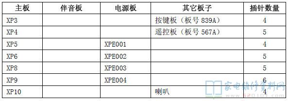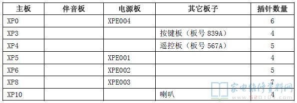 三、主板、伴音板、电源板及其它板子间连接线对照表