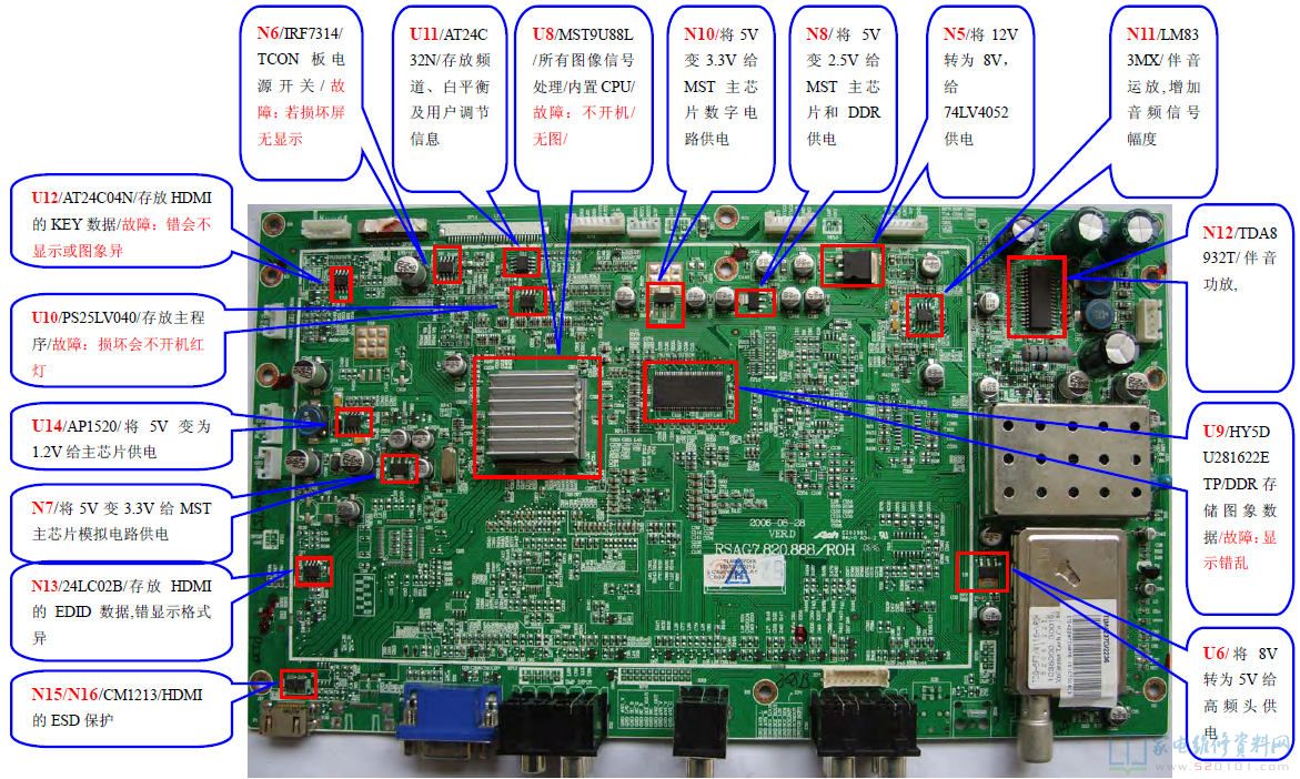 上述机型的主板统一使用RSAG7.820.888或RSAG7.820.915印制板,标红机型使用5V屏,机芯方案为MST9。