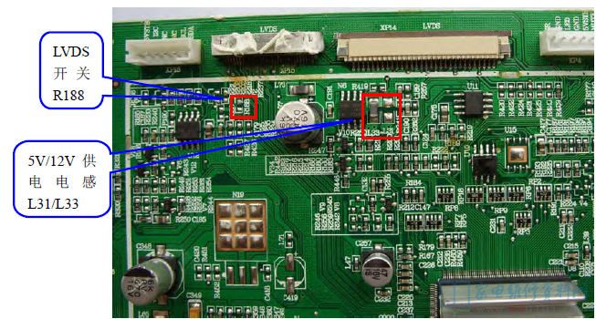 修复后切记将L33取下,恢复到L31,否则此板用在5V液晶屏上将烧坏屏。