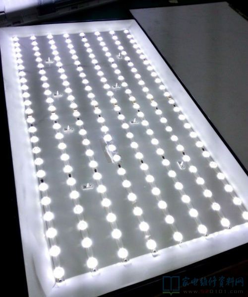 故障检修:后期检查为灯条问题,逐一一查看发现有一灯珠不亮,剔除掉,此灯珠为3V电压,用3V灯珠的拆机灯条剪一粒焊线连接,仔细观察与其他灯珠的亮度差不多,试机24小时无问题交用户已有3个月。此方法比较简单,当然是要固定好。