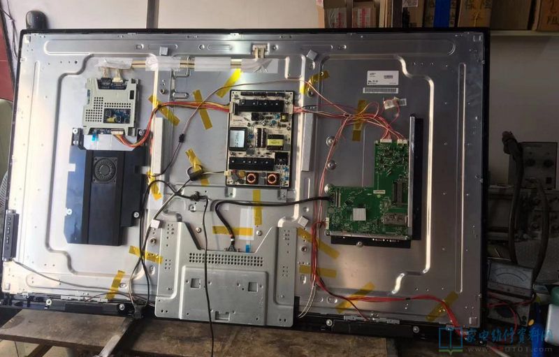 近期接修一台海信LED55T36X3D的机子,用户是用车拉来的,报故障说开机后没有电源指示灯,电视也没有一点反应,和用户商量好先检查后报价,留下手机用户就走了。之后拆开机器进行检修。