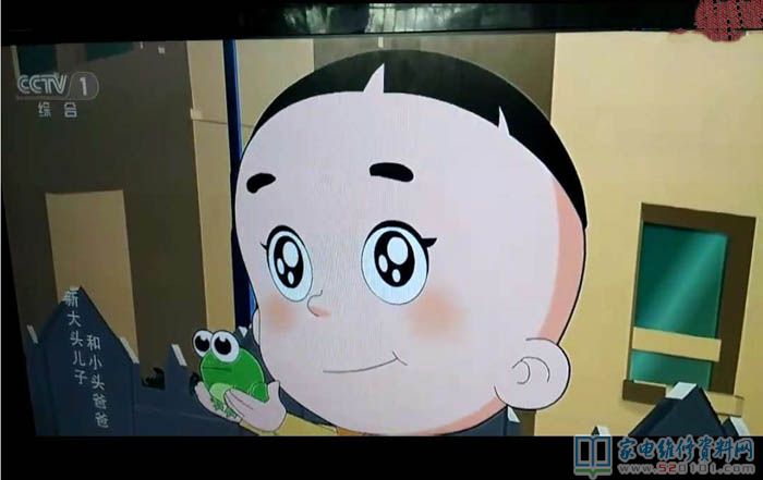 接修一台42寸的海信LCD电视,型号是:TLM4236P/8991,这台机器年限很久,有50斤重,故障现象是通电开机一分钟后出现鬼符纹(如下图所示),初步判断,是屏故障、逻辑板伽马坏,屏线没接触好之类的问题。