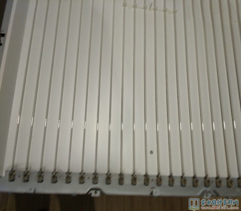 开盖测量几只逆变管电阻正常,用手触摸发现只有中间的两只没有温升,其余的都有温升,手头有一块拆机修复的高压板,换上后故障依旧,心中不禁有些失落,又要开屏,便把开屏的风险告诉了客户,征得同意后,动手拆机,拆开后发现是中间两根灯管的卡子打火,致使灯管接触不良,由于手头无此卡子更换,便将卡子清理干净吃锡,灯管头也吃上锡,装上焊锡,搞好后装上高压板上电观察,灯管全亮,修复成功。