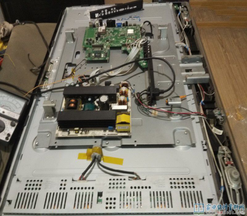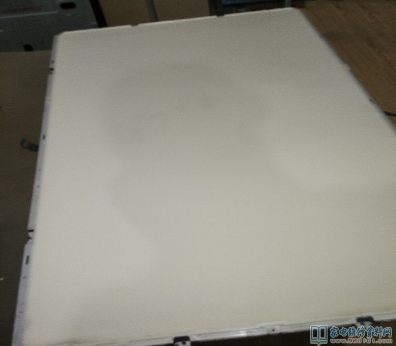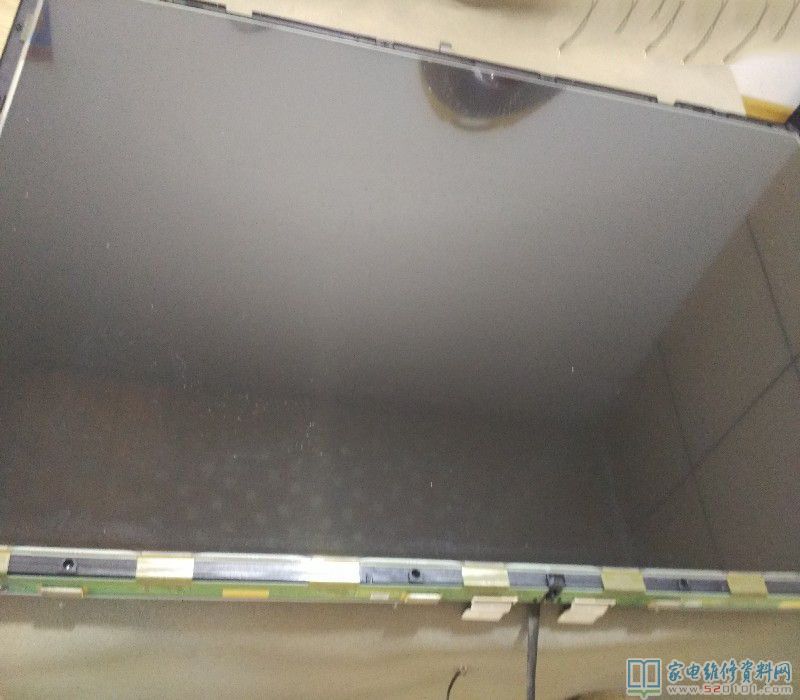 接修一台海信TLM42V69P彩电,客户说开机几十秒后出现保护性关机,送到我处求修,上电观察,开机正常出现蓝屏后,便保护性关机,连续开机多次观察,发现上下两边正常,中间发暗,心中有数。