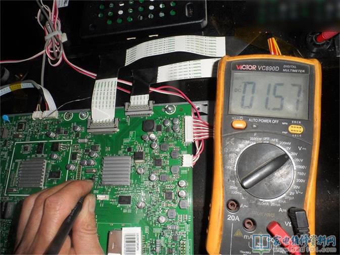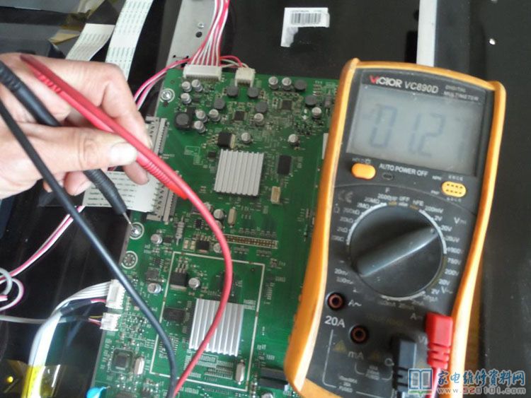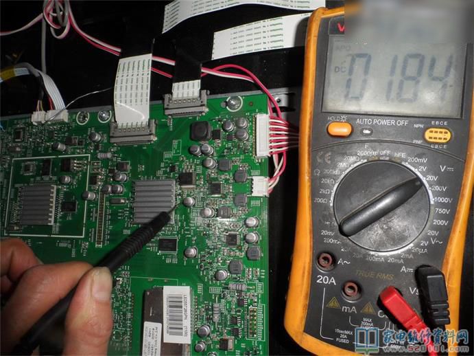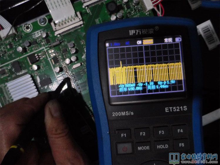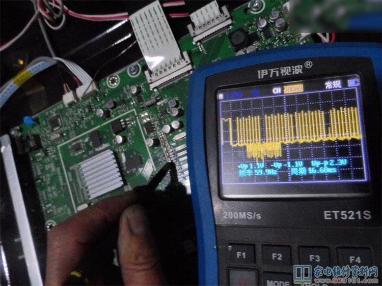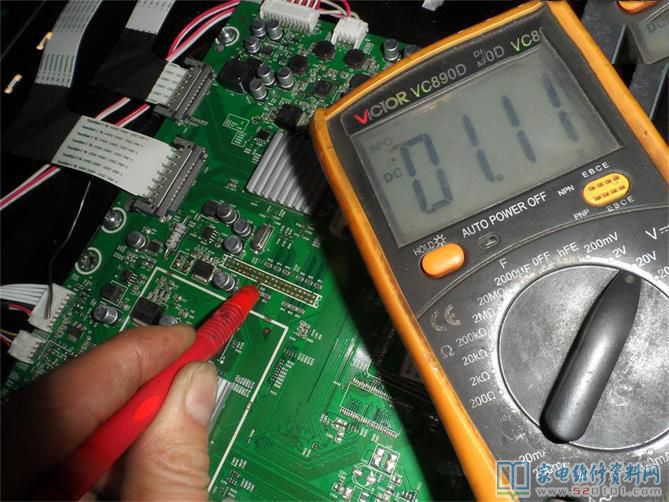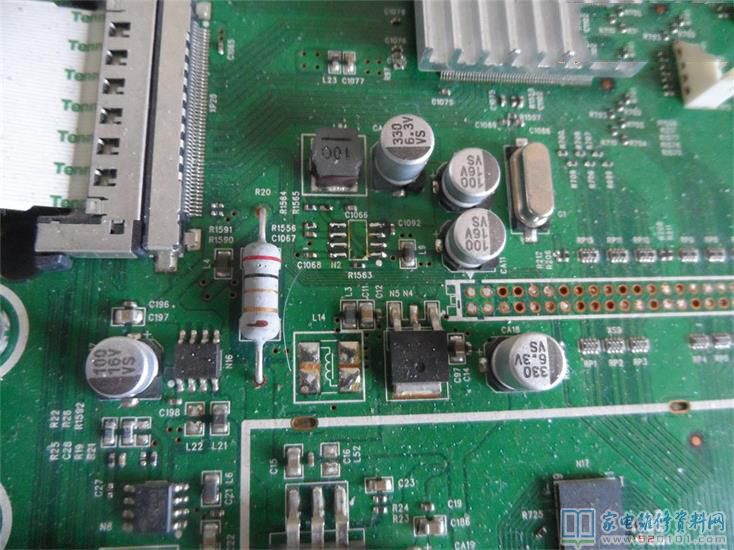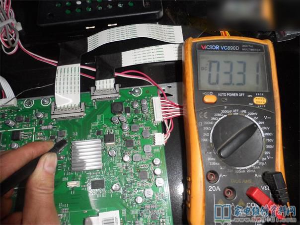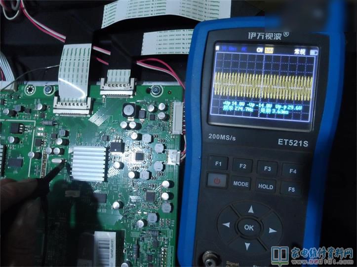 接修一台海信电视LED55T28GPN灰屏,开机有声音,屏幕灰暗,说明屏没有工作或屏有故障,拆开后盖看主板,除了常见的主芯片还有一块倍频处理块。检查主板输出的LVDS信号电压1.1V左右正常,波形也正常。(大部分测试LVDS信号电压,老式机器1.2V左右就正常,新式机器0.9V左右,也有0.6V的是LVDS信号用的是低压差分电压,波形可有可无,测量电压基本可以判断)。说明主芯片工作基本正常,也有个别机器屏参不对引起灰屏。检查倍频处理电路输出的LVDS信号电压0V不正常(直接输出到逻辑板的电压)。