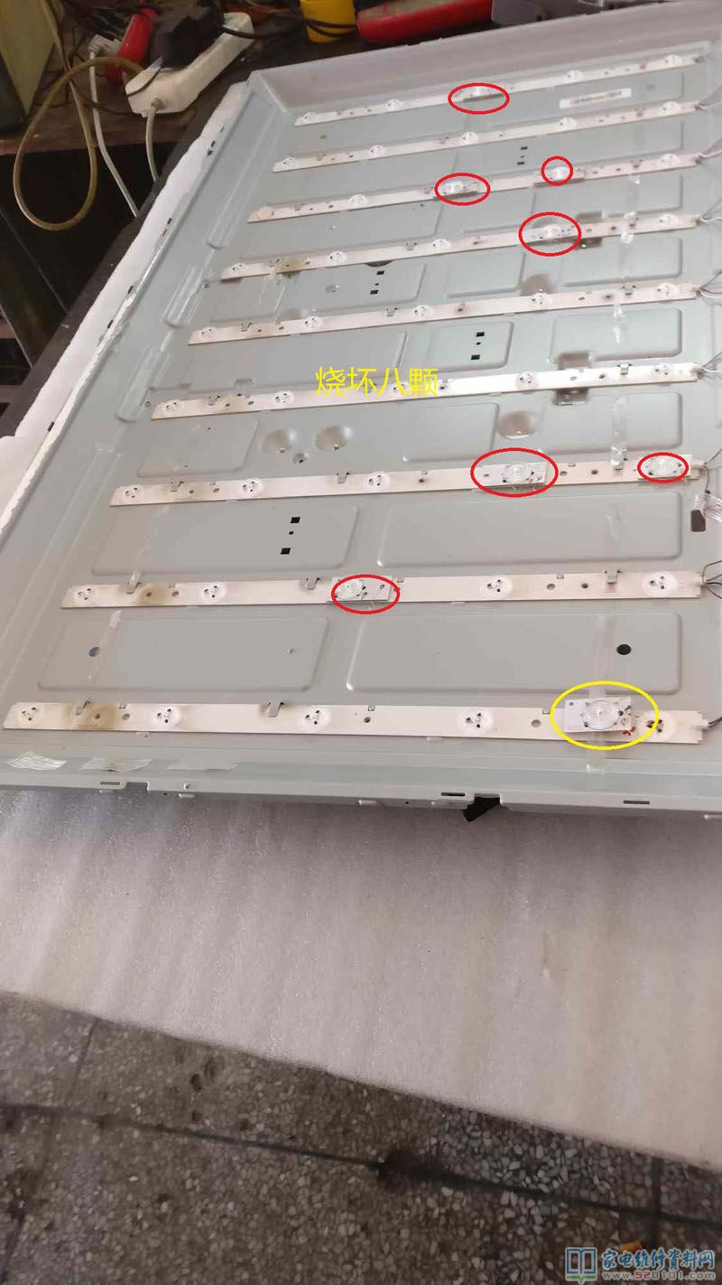 此电视一共烧了8颗灯珠