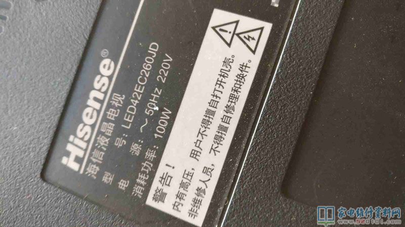 此款海信液晶电视背面铭牌