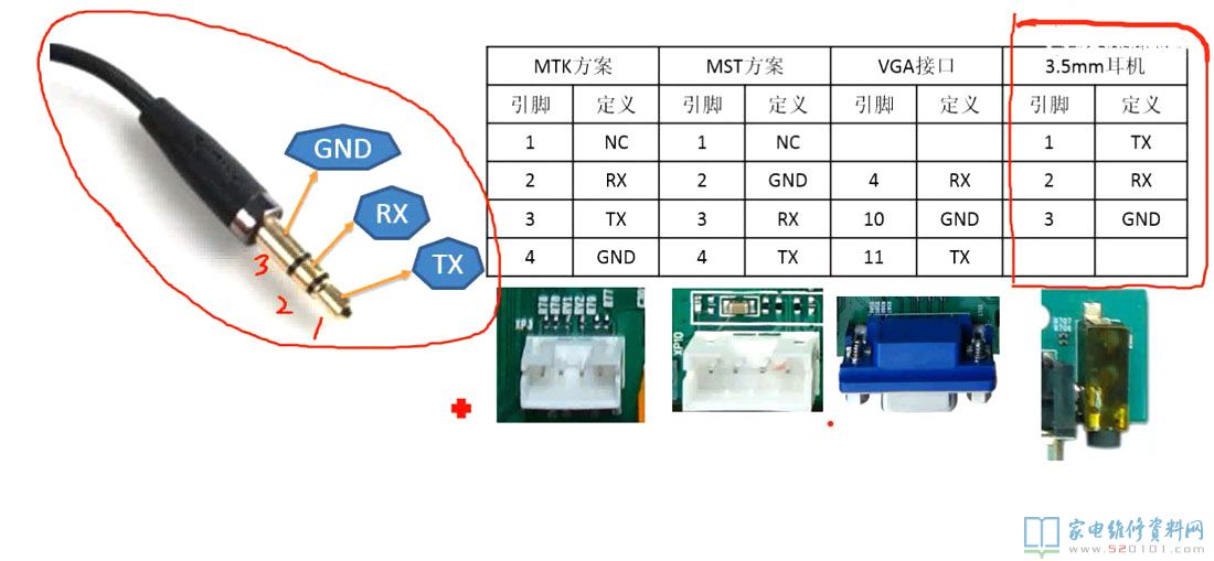 海信网络液晶电视利用耳机制作升级线的方法 2020-06-19 04:41:24 阅读 328 次 评论 0 条 摘要: 海信网络液晶电视是没有VGA接口的,它是采用耳机接口进行升级调试(查看打印信息和配合U盘升级),耳机线可以自己制作(下图是其制作的照片)。按下面照片接好耳机插头,另一端对应接编程器的 RX、TX、地 即可 海信网络液晶电视是没有VGA接口的,它是采用耳机接口进行升级调试(查看打印信息和配合U盘升级),耳机线可以自己制作(下图是其制作的照片)。按下面照片接好耳机插头,另一端对应接编程器的 RX、TX、地 即可。 版权声明:本文为转载文章,版权归原作者所有,欢迎分享本文,转载请保留出处! 点赞 分享: PREVIOUS:创维42E82RD液晶电视通电绿灯亮但不开机 NEXT:采用LM230WF5液晶屏的闪屏故障维修 文章导航