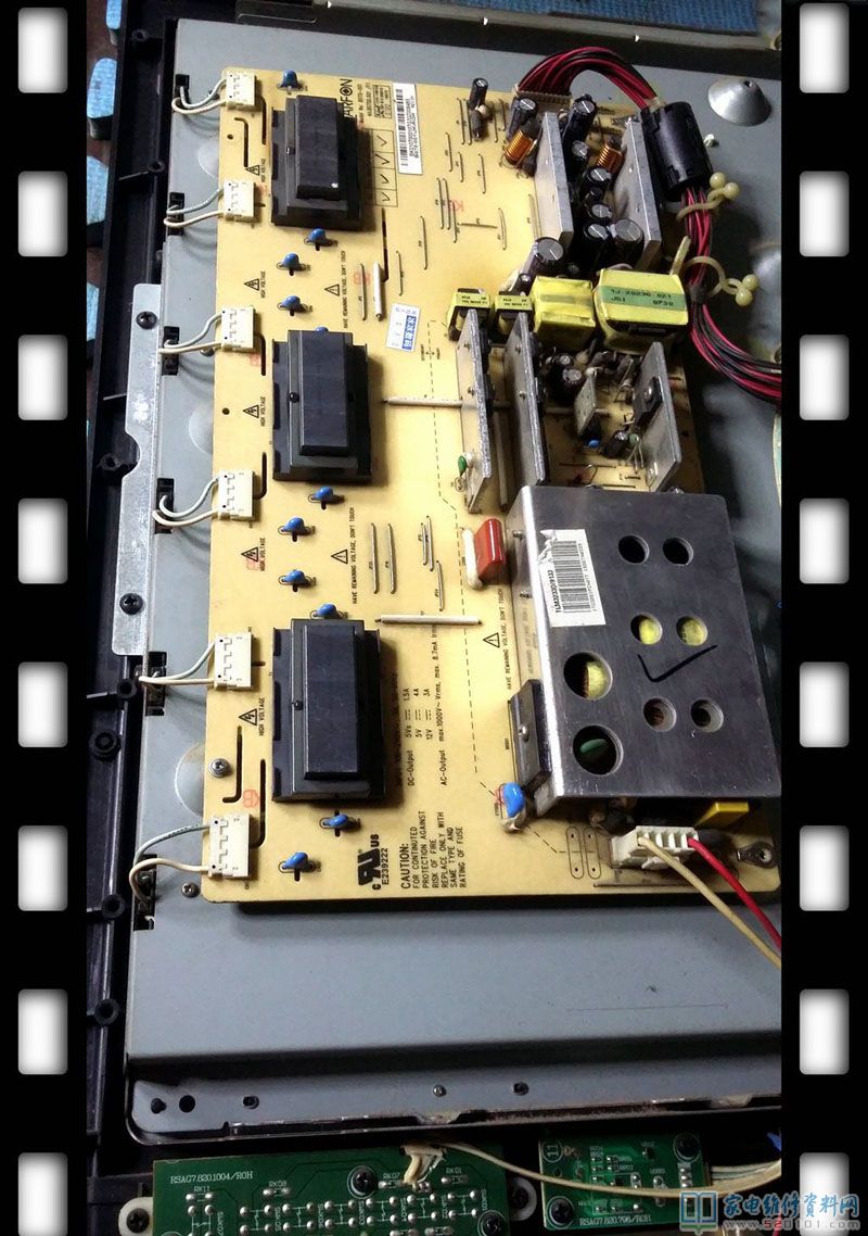 分析故障,亮一下就灭,有图标,主板(驱动板应该没有问题),重点在高压板和灯条,拆机发现,此机是电源高压一体板,共有三组独立高压包(高压变压器简称),六个灯口,按一灯口两个灯计算,这是一个12灯的液晶屏,仔细检查,发现最后一个(从上至下)高压包已经流泪,按着高压板点灯原理,不能多点一个灯,也不能少点一个灯,现在也就是有4个灯不能被点亮,所以此时的高压板检测电流异常,平衡保护,就会使液晶电视亮一下就灭。等板子到后,上板一切正常,又发现按键功能错乱,又更换按键,自此维修完毕。