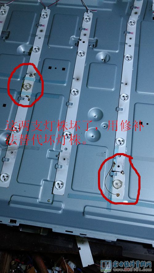 6、这两支灯珠坏了,用修补法替代坏灯珠。