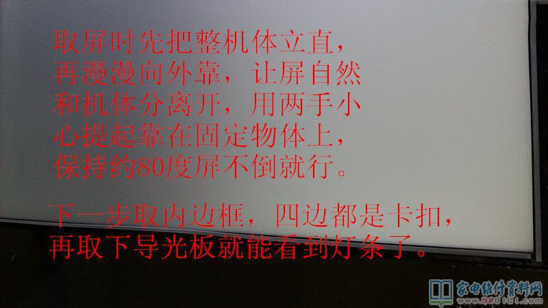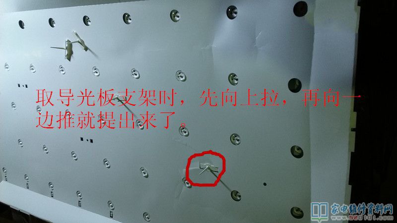 5、取导光板支架时,先向上拉,再向一边推就提出来了。