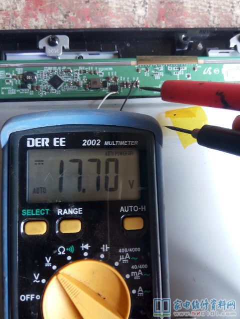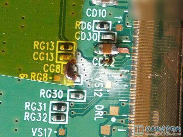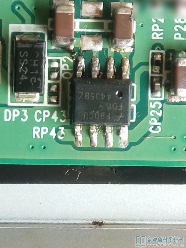 接修一台海信LED37K11液晶电视,故障表现为蓝屏无字符,有声音。电视有声音,维修就好办,测量发现LGH、LCH等均无电压,特别是有个8脚芯片FDB4435,目前还不知道是此芯片的作用,5678脚无输出电压。用维修电源烧机发现有个电容CD22冒烟,更换掉之后,故障排除。另外在烧机时要注意,电压是慢慢往上调,调到3V时电流到2.8A了。