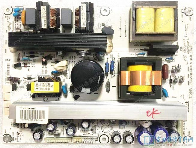 接修一台海信TLM37E29液晶电视,客户描述说故障是有声音黑屏,在客户家开机现场测试红灯亮没反应,按遥控和机身待机键都没反应,开壳,拔掉按键板,开机有声音,插按键板又开不了机。等机主走后,反复测试,拔掉按键板还是红灯亮无反应。