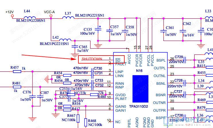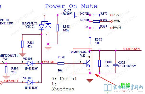 接修一台海信TLM26E01液晶电视,故障表现为伴音问题,之前已经维修多台,拆开机器,测量TPA3110D2的1脚电压如果波动或不够2V,拆掉一脚外接的三极管V23即可,一脚电压恢复2.6V就好,已经修了好几台了。