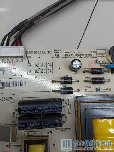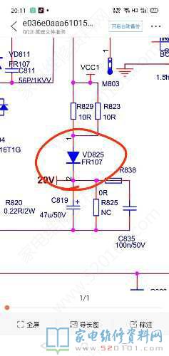 接修一台海信液晶电视LED42K20JD故障现象为插电红灯蓝灯交替,屏幕微微一白就黑屏,如此反复。拆机首先断开背光灯,插电依旧如此。万能表量16V正常,背光灯152V,量12V电压为8~11V跳变,断开主板,继续单独测试电源板量12V输出为11.8~12.3之间轻微跳变,电源板有间断的滋滋声。首先考虑把滤波电容代换了无果,整流管也排除了,光耦也代换了,不过我感觉还是光耦周边的事情,翻图纸查光耦周边电压20V只有10.3V左右跳变,直接找输出端,顺着往上查最后代换VD825二极管后故障排除。此二级管不管在路量还是拆下量都是阻值都是好的,反向也没击穿,应该是性能不良,感觉这个问题还是比较难遇到的,仅此留个简单的修理过程,个人水平有限,请多指教。