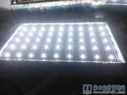 将电视拉回维修部,用点灯仪在灯条接口测量,无论正反测量都显示断路,拆屏换灯,拆开后,挨个测量灯条,竟然全部都亮,电压一样,再次测接口,竟然好了,电压119V。没敢装机,先把背光电路大电流的配件补焊一下,再次开机,灯全部点亮,以为开始误诊了,不是灯条故障。