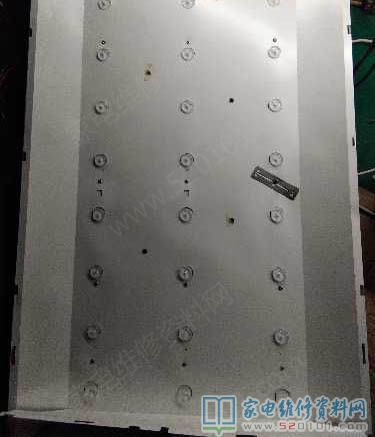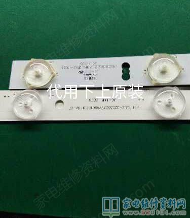 拆屏看同行换的代用8灯的灯条,贴在反光纸上,用手机维修电源调到15V上测试出一个灯珠坏,用电源测灯珠很方便,发现不亮的可用低电压3V测试出那个坏,短接这个灯后去掉一个改电流电阻,以前已经去掉一个了,开机点亮,热后拆下灯条,底部巳高温变色,必须正换,某宝真找不到这种9灯灯条,最后在本省网购了代用9灯3V铝灯条两种,不愿贴在纸上,最后用灯距相近的海尔用灯条能装在纸下,不用开孔,有点长割去了接口焊线,对这家灯条质量放心,多年购买,没有问题,最后钻孔攻丝上好。