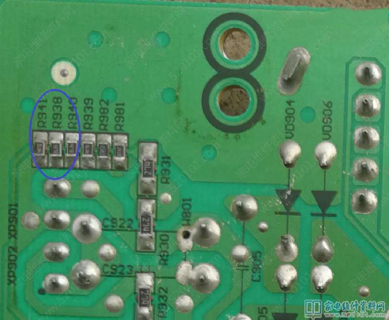 商家说换灯条后,电源板RSAG7.820.6389需拆掉三个电阻(个人没有拆,反正拆屏也方便,灯条再坏,再换就是了。因为感觉拆了,可能亮度会有些影响)具体位置如下图所示。