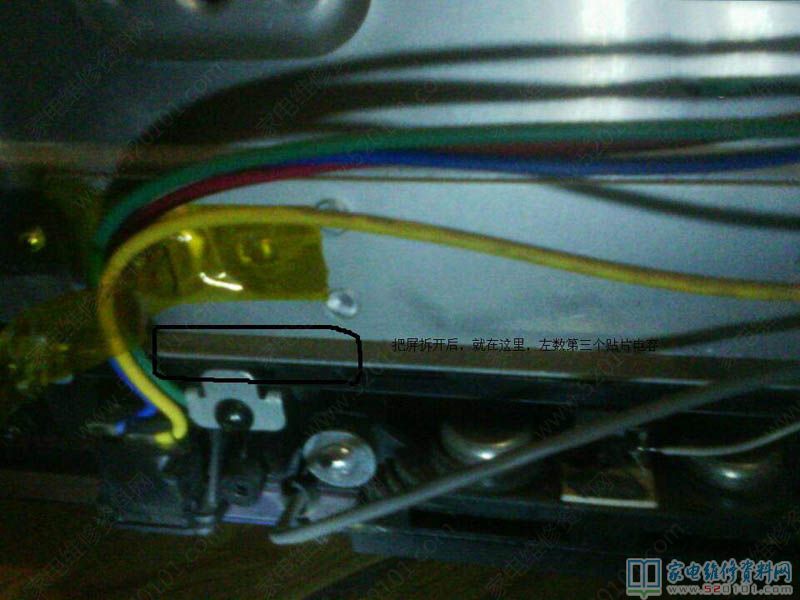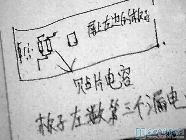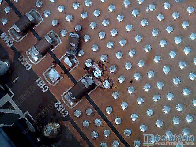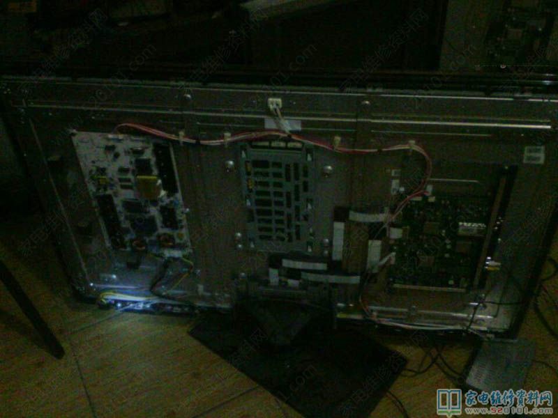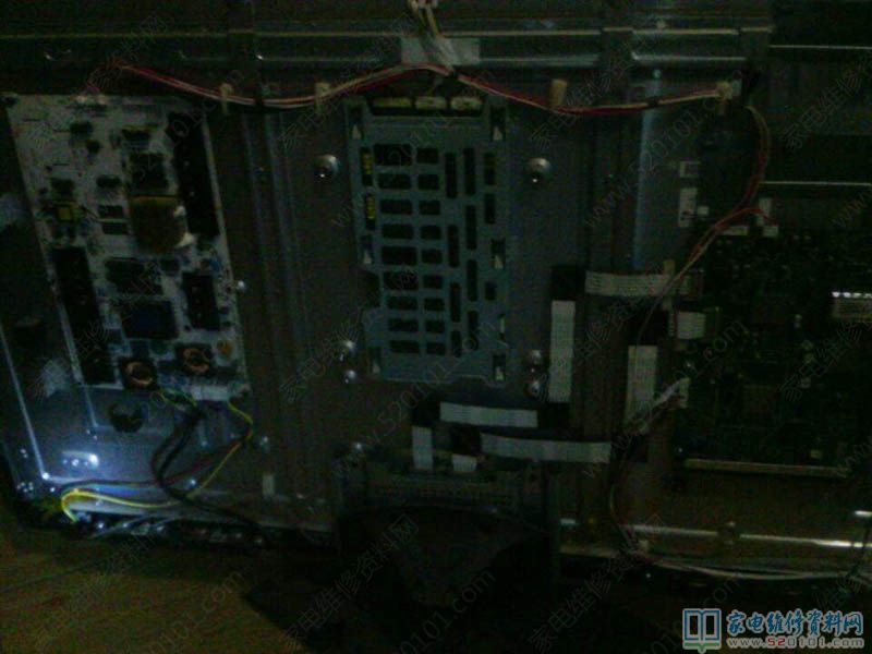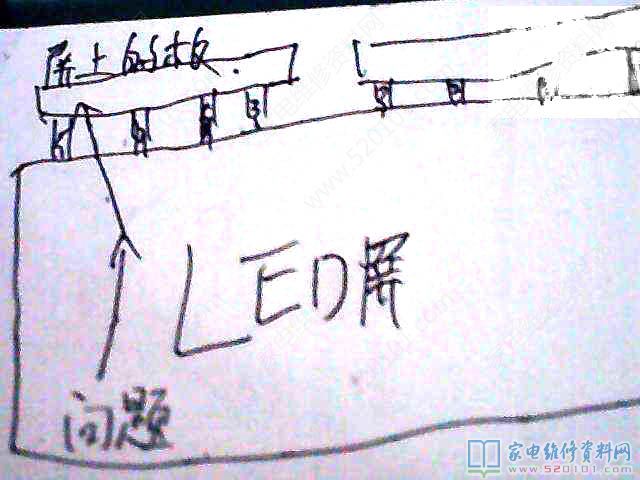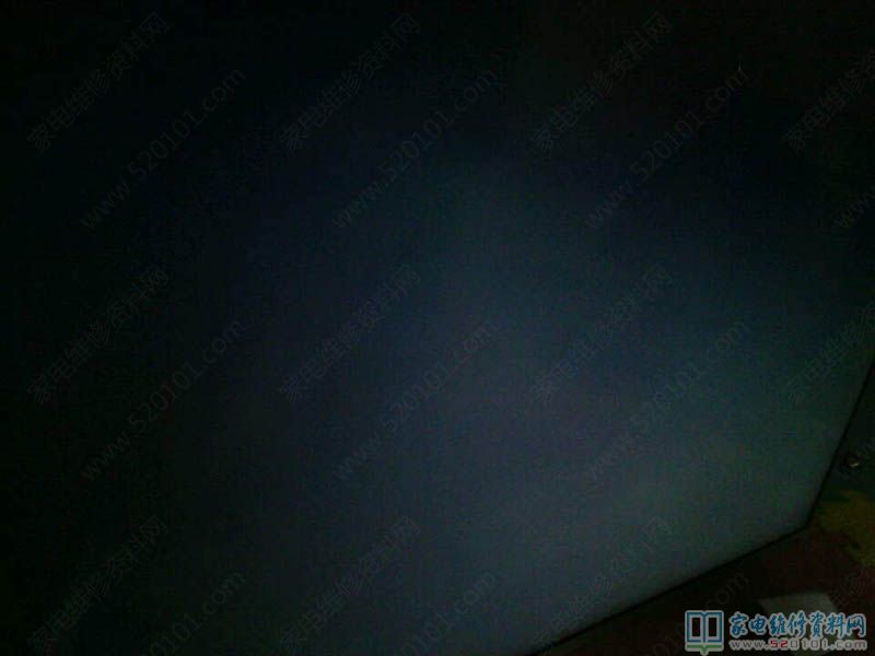 接修一台海信LED47T29GP液晶电视,故障表现如见下图所示,为灰屏故障,经检查主板、逻辑板、排线都是好的,判断屏出问题了,与用户协商,拆屏。把屏拆下,检查没有集成块,就是电容与电阻,再有就是LED屏了,初步测量电阻没问题,也没有屏保险,贴片的电容,在线测量,右边的对地不通,左边的有阻值,挨个测量,左边第一组的一个电容漏电,更换之后,故障修复。
