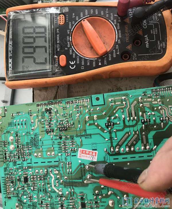 接修一台海信TLM32E29X液晶电视,故障表现为有时自动关机,指示灯不亮,拆机检查24V、12V、5V全无,检查各电容和PFC取样电阻都正常(已除去背面胶)。最后怀疑17A06电源芯片有问题。