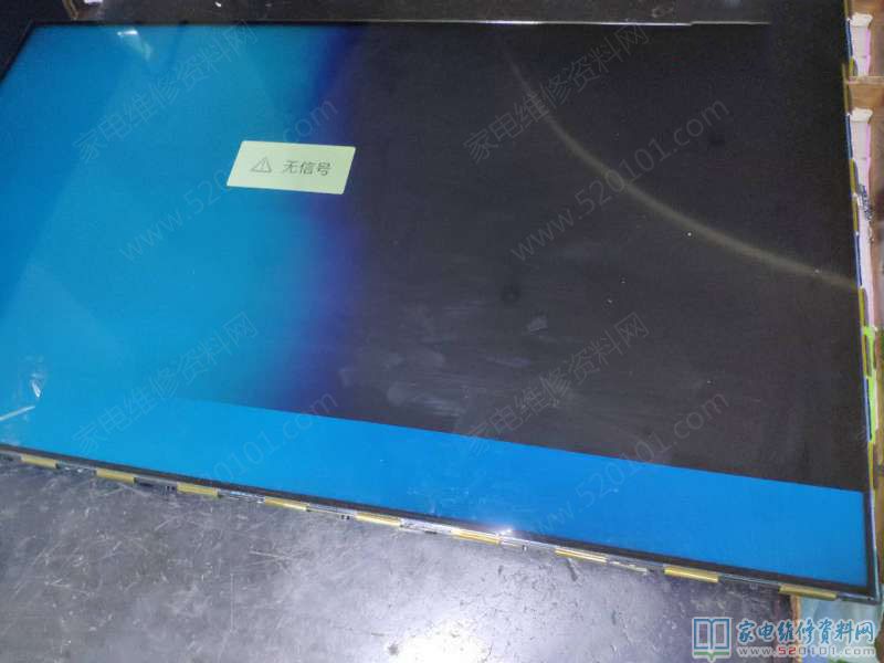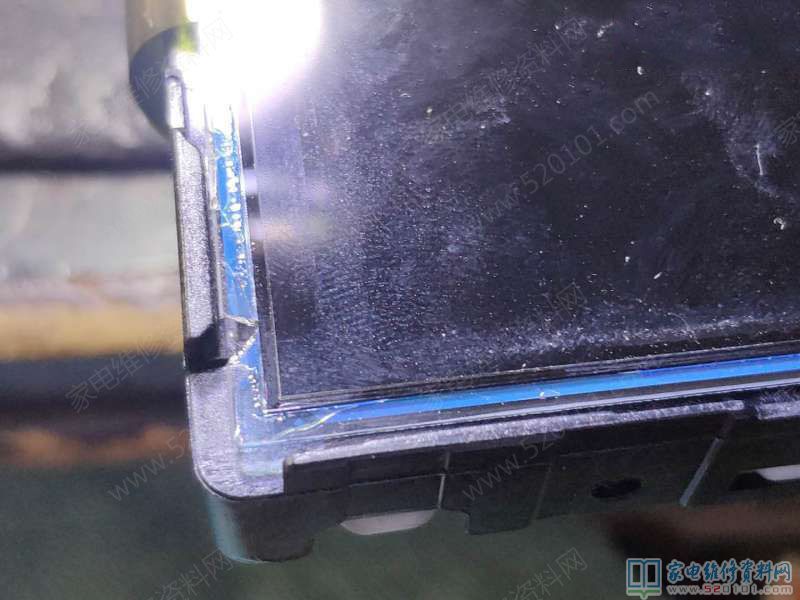 百思不解,后来拆开屏幕发现图片位置玻璃有点缺角(先说一下这个绝不是自己搞出来的),后来分析估计这个屏幕出厂就有,拆开屏幕让断裂处有轻微短路。于是试着去掉右边COF,发现去掉部分图像好了,于是去掉一个观察一下现象(因为我断掉右边VGH图像不正常,到底去掉COF和断掉VGH有啥区别,我也不懂,所以不敢贸然去掉右边COF),后来全部去掉后电视机修复,这个电视机差点就白折腾了,我也不知道缺个角用户还用了差不多4年,这个电视机能够修好,感觉全凭运气了。