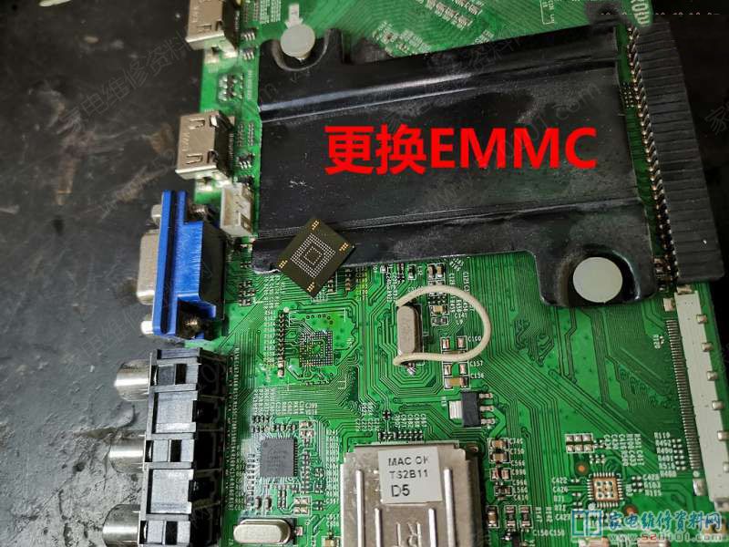 一同行拿来一块海信液晶电视LED58K280J主板,原装故障是背光亮无图像,他用U盘升级了一下直接不开机了。通电试了下指示灯亮按遥控无反应,用编程器接主板VGA口也无打印信息输出,准备清空EMMC程序写引导提示Read eMMC ID Failed(读取EMMC ID失败),直接写引导也是这个错误提示。