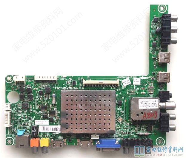 一台海信LED39K310X3D型液晶电视,开机后灰屏,伴音正常。据客户说,该机在正常收看中光栅突然消失,伴音正常。上电试机,红色指示灯亮;按一下“开/待机"键,红色待机灯闪烁几下后熄灭,蓝色指示灯亮,开机音乐声正常,背光亮,灰屏。拆开检查,主板(板号为RSAG7.820.4779/ROH)上5V和12V供电正常。主板上DC-DC电路输出的多组直流电压也都正常,但上屏线插座XP2中无12V屏供电电压输出。测上屏电压控制管N112( 4805)①脚12V输入电压端正常,且控制端④脚电压也正常,但输出端⑤~⑧脚电压为0V。按下上屏线再测,N112仍无12V电压输出,由此判断N112损坏。因手头暂无此型号场效应管,所以决定采用应急方法维修:先焊下集成块N112,然后用一根导线跨接①脚与⑤~⑧脚的焊盘上。检查无误后通电试机,图像出现,故障排除。