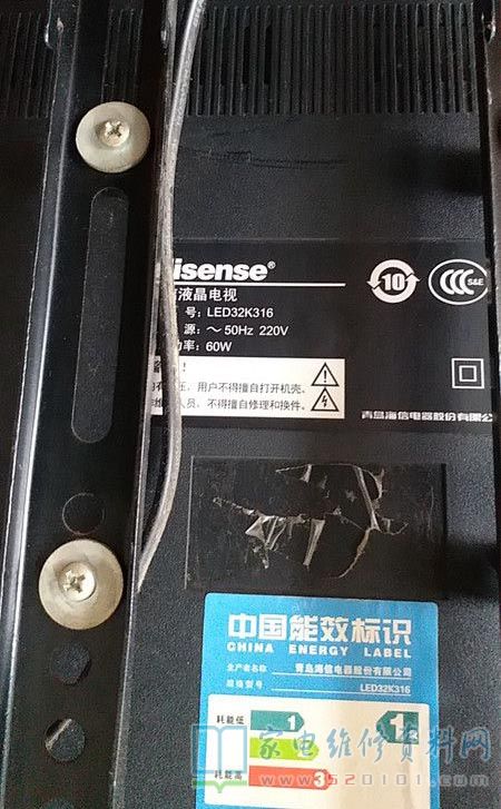 接修一台海信32寸LED32K316液晶电视,故障现象是开机后背光亮一下就灭掉了,声音正常。拆机后重点检测背光灯条,此机为两组LED灯条串联,用自制灯条检测装置测两组灯条都能点亮,两组电压也一致,把两组灯条串联好,再用检测装置点亮灯条,然后开启电视机,图像正常,亮度均匀,觉得LED灯条应该没有问题。