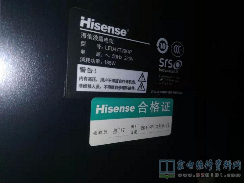 接修一台海信LED47T29GP液晶电视,故障表现为开机不定期花屏 、红屏、绿屏、灰屏,看起来故障比较多,多开几次后能正常出现蓝屏开机画面,就可以正常观看。在观看过程中不定期还会出现灰屏 ,有声音现象,有时是花屏带竖线画面。