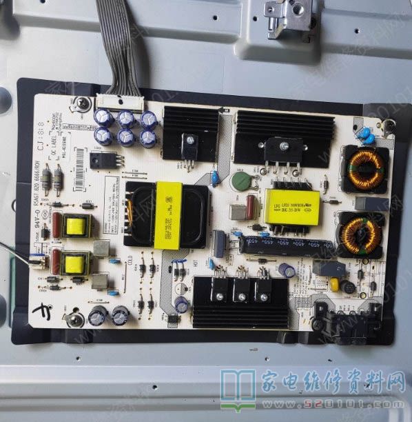 接修一台海信LED50EC500U液晶电视,故障表现为开机指示灯红灯转蓝灯几秒钟,有转为红灯了。拆机测电源板(代码RSAG7.820.6666)待机时12v为9.2v,按电视开机键后测STB电压2.4左右,sw、pwm电压4.2v,背光不亮,然后STB电压消失,电视机待机,12v又是9.2v。最后去掉电源板上的V901开机不关机了,但是背光不亮,测个路电压都正常。最后判断为灯条故障。此电源灯条故障电源板保护停止工作。