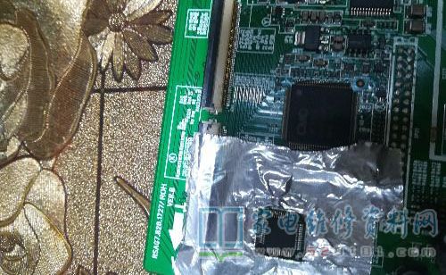 因为担心热风枪把块周围的小贴片吹飞,慎重起见,用铝箔先贴了一下。调好温度和风量,很顺利吹下来。再往上焊费了一些功夫。首先清理焊盘,因为引脚比较密,四周都对齐不太容易,静下心来,用镊子仔细调整,配合放大镜,终于基本对齐。还是吹焊,没有用烙铁拖焊,(上一次就是拖焊,一排中的最后两三个脚始终拖不尽,反复焊才把板子弄废的),四周都吹牢,用放大镜仔细检查,没有粘连。试机正常。再摸块,基本无温升,故障修复。