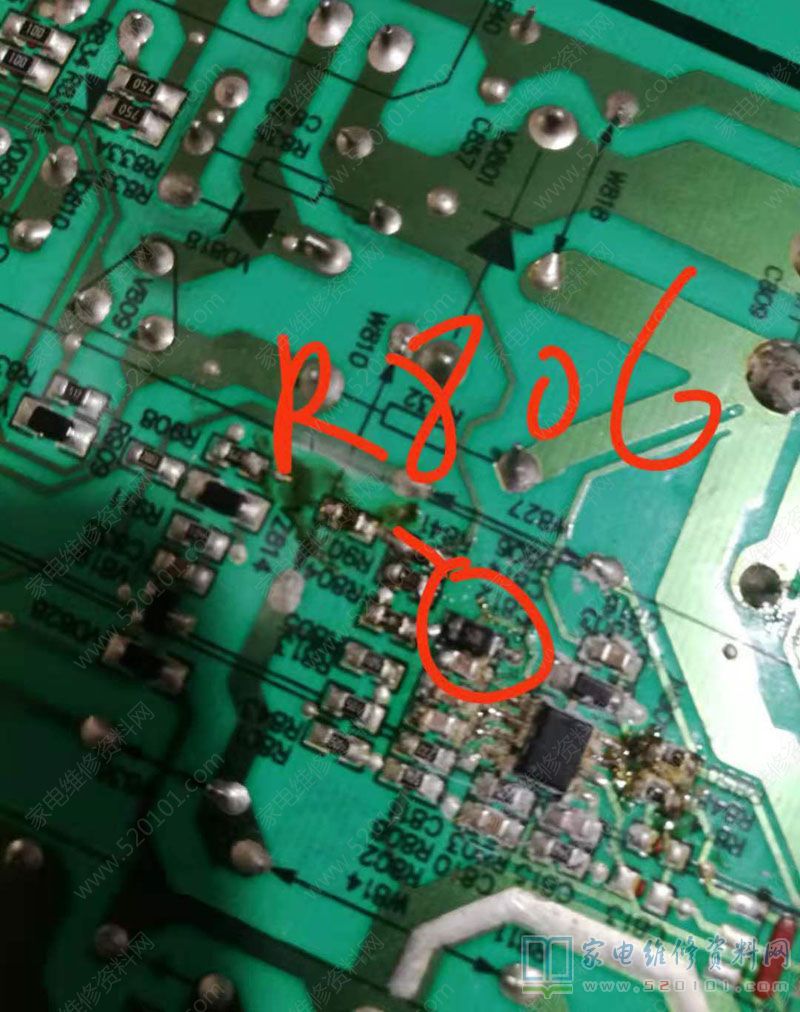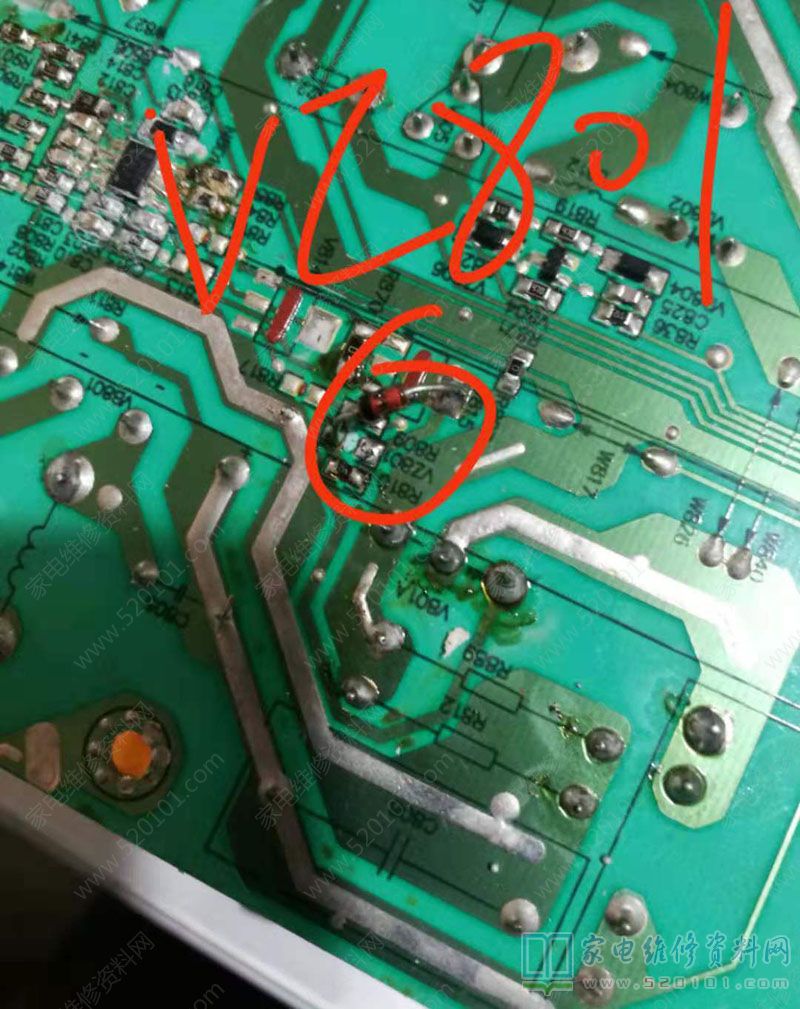 海信TLM4236P液晶电视热机状态下背光闪烁的故障维修 2022-04-18 05:26:54 阅读 944 次 评论 0 条 摘要: 接修一台海信TLM4236P液晶电视,故障表现为热机状态背光闪,开机测电压5V、12V正常、24V在20-23V之间跳动,拆板检查,目测VZ801 15V稳压二极管差掉一半 ,找一个稳压管换上,开机背光就 接修一台海信TLM4236P液晶电视,故障表现为热机状态背光闪,开机测电压5V、12V正常、24V在20-23V之间跳动,拆板检查,目测VZ801 15V稳压二极管差掉一半 ,找一个稳压管换上,开机背光就闪,用表逐个测量电阻 ,测R806 560k电阻的阻值不对,拆下测量阻值无穷大,由于手头没560K贴片,于是找2个1M贴片电阻并联焊上,开机一切正常 ,故障修复。 版权声明:本文为转载文章,版权归原作者所有,欢迎分享本文,转载请保留出处! 点赞 分享: PREVIOUS:由AS15-G导致海信液晶电视花屏的故障维修过程 NEXT:长虹P5系列激光电视常见故障维修与软件升级 文章导航