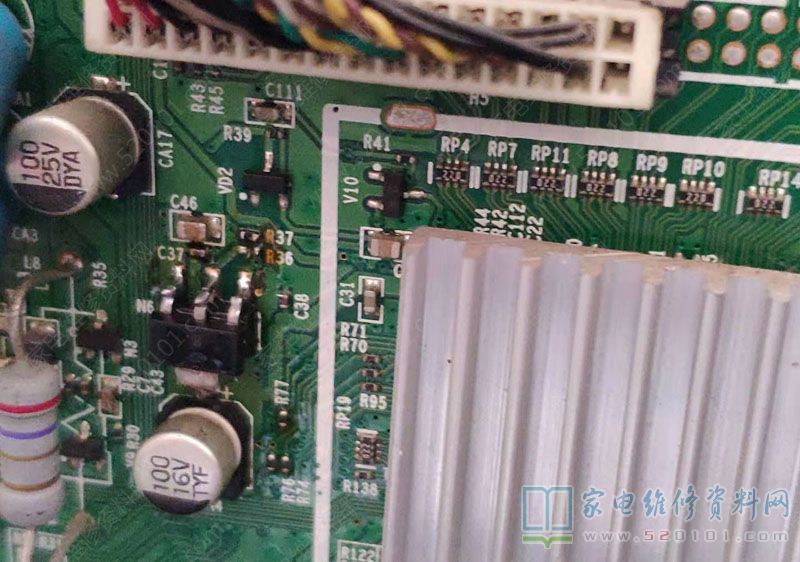 接修一台海信TLM32V68A液晶电视,故障表现为热机死机,有时候死机出现类似缓存接触不好的现象,有时候死机可以自己恢复,有时候必须关机才可以恢复,有时候很久不出故障,检查发现电源板是没有故障的,后来发现手按压主板电视机故障立马出现,当时以为是主板芯片接触不好,准备要焊接主芯片时候又将故障缩小到图片三端稳压器,以为是三端稳压器接触不好(手按它故障出现),焊接后故障依旧,于是查这个稳压器出故障前后电压变化,发现出故障时候输出电压不到1V,这是一个1.25V的三端,且出故障时候输入电压会升高,判断该芯片内部接触不好,于是更换此元件,电视机不再出现故障。