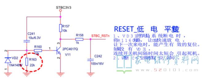 接修一台海信HZ50E3D-PRO液晶电视(NT72671),故障表现为开机三无,指示灯不亮,拆机检查,首先按遥控器和本机按键无反应。排查主板无短路现象(各路供电,HDMI,网口等),通电测量12V正常,待机3.3V和1.8V正常,似乎处入待机状态但无法二次开机。接升级工装查看开机无任何打印信息,于是重点排查主芯片,emmc,晶振以及复位电路,首先检查复位电路(位于HDMI2接口附近),复位三极管第3脚始终为0V而第1脚始终为0.6V不正常。排查为电容C241漏电所致,更换C241机器正常。