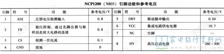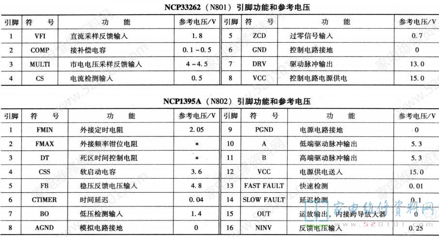 该电源板的集成电路引脚功能和参考电压见表1 ~表3。