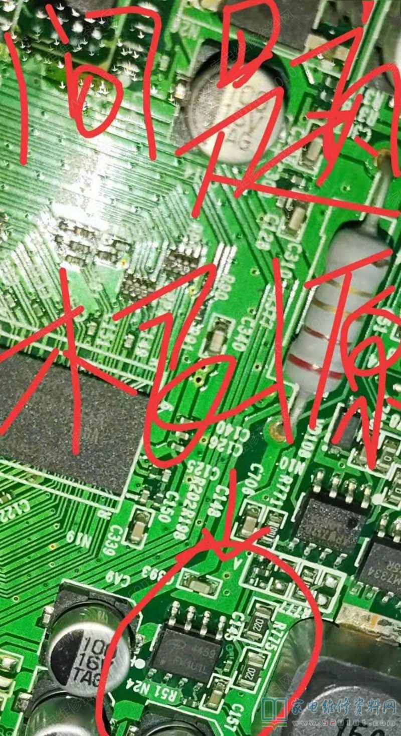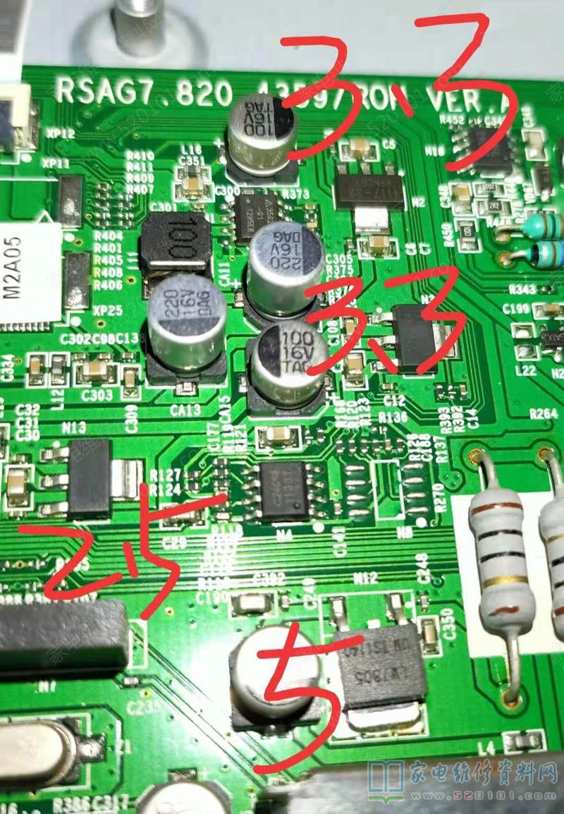 想想有时候又能正常开机于是反复开关机,想正常开机的时候再测一下各种电压做个比较。其中测量时发现一组3.3V芯片输出电压为2.6V,原来问题在此哈哈立马更换3.3芯片。结果还是差不多,只是能够开机的次数增多。另外并联一个3.3V的电源小板还是如此,后来多次对比能够正常开机的电压此芯片输入端电压是5.2V。不能开机是4.2V顺藤摸瓜。此处5.2V电压是来自4459芯片,测量4459芯片输入端电压5.3V正常,看来真正的问题在此。芯片变质了,立马更换。反复几十次开关机测试都正常开机。问题终于排除,理论上说4.2V输入电压3.3V输出电压也能够正常,正是因为忽略了这一点细节,所以走了不少弯路,所以说每一个维修工都不能忽略任何一个细节,也许就是你忽略的这个细节就是问题的根源。