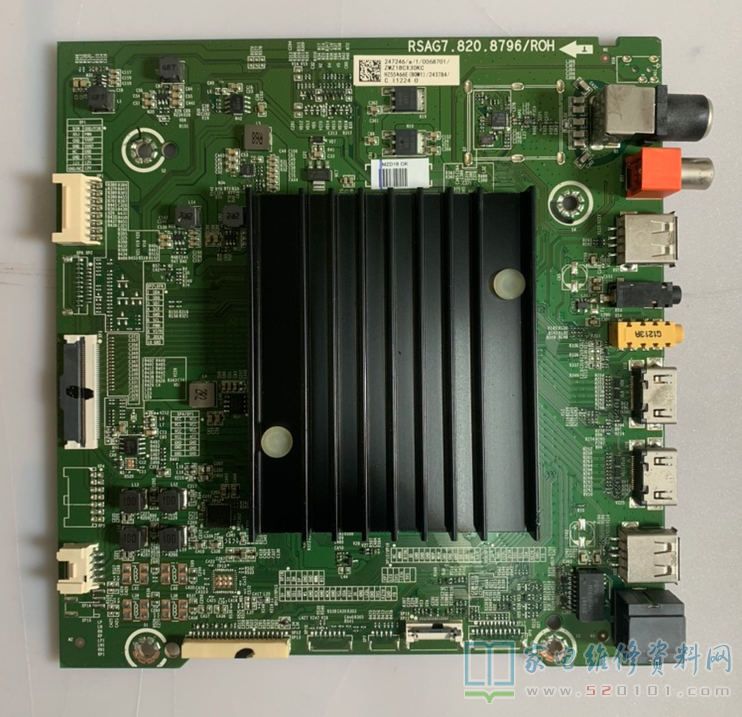 接修一台海信HZ55A65液晶电视(MSD848机芯,RSAG7.820.8796板) 故障现象是开机广告后就待机,开机广告过后就变为待机状态,用遥控器开机后,又变为待机状态,先用U盘升级,故障依旧,测量电源输出12V电压正常,测量CPU供电1.1V正常,测量EMMC供电,1.8V,3.3V均正常,更换EMMC N56 H26M52208后故障排除。
