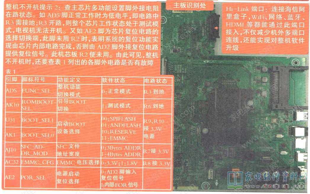 海尔6489主板主要芯片为Hi3751-V600(具有四核CPU+六核GPUI图像处理+四核VPU视频处理)。该主板除应用在海信LED50K5500US、LED55K5500US机型液晶彩电外,还用于LED50K700U、LED58K700U、LED43K300U、LED40K300U等300U系列产品中。采用Hi3751-V60的5500US机型液晶彩电具有以下功能:接收一路HDTV高清YPbPr、两路HDMI、一路USB2.0、一路USB3.0.CI、TF卡输入及DTV接收和BT蓝牙4.0,内置2.4GHz/5GHz双频段WiFi无线网络信号和有线网络的接收处理,具有独家自带Hi-Link(C)端口,可外接阿里盒子,实现后续不断升级补充,在设置中可直接进行本机系统和外接盒子系统的切换,见图1。
