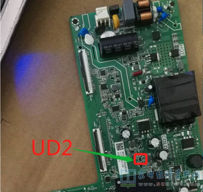 接修一台海信43H3F-G液晶电视(MT9255机芯) 故障现象是不定时不开机或开机后不定时关机故障检测 。按经验,不定时不开机或者开机后死机,先查各路供电。此板型号是TPD.MT9255T.PB703,为外加工板,待机电源是由UD2直接从12V转为了3.3V,12V转出的主5V受控。在出故障时检测待机3.3V为0.3V,手摸UD2(丝印为FX3BCE)没发热,检测待机3.3V对地1.8K无明显短路。