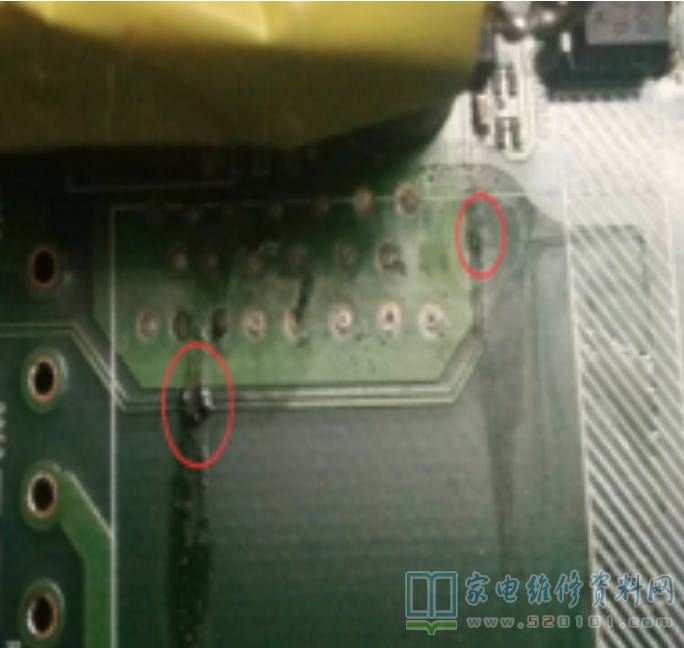 接修一台海信HZ32A35液晶电视(MSD648机芯),故障表现为无声音无图像,该主板整合电源和T-CON电路,主供电12V只有6V左右,排除相关电路无短路,确定故障在稳压电路部分。该主板稳压电路主要由N791(HOZ1GN)和光耦组成,代换光耦和N701后,主供电由6V升至9V左右,这应该是主板加热后引起的,由于有部分电路在开关变压器下面,于是拆下T801,发现电路锈蚀并有漏电迹象,清理干净后用绿油重新封固后机器正常。