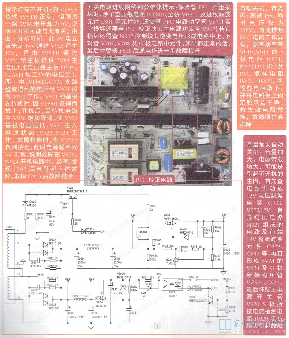 海信RSAG7.820.2169板主电源电路维修图解 2022-06-17 17:32:36 阅读 698 次 评论 0 条 摘要: 海信RSAG7.820.2169电源组件应用在海信MT5301机芯生产的TLM42E01产品上,该电源组件使用MC33262(N801)作PFC功率校正控制块,OB2269CAP(N902)作主电源双5V 海信RSAG7.820.2169电源组件应用在海信MT5301机芯生产的TLM42E01产品上,该电源组件使用MC33262(N801)作PFC功率校正控制块,OB2269CAP(N902)作主电源双5V和12V电压形成控制电路,OZ9938(N701)为给背光逆变器工作提供高电压的控制块。本文特对此部分电路作维修说明,如下图所示。 版权声明:本文为转载文章,版权归原作者所有,欢迎分享本文,转载请保留出处! 点赞 分享: PREVIOUS:长虹JUC6.690.00190313主板逻辑板电路部分实测电压值 NEXT:海信RSAG7.820.2169板背光电路部分维修图解 文章导航
