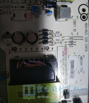 接修一台海信LED45M5010U液晶电视,故障表现为开机指示灯能变蓝,黑屏,本机和遥控都无法关机,拆开后盖初步检查24V、5V,开关机转换电压正常,背光LED两脚电压为0V。外接背光检测仪点亮,开机后显示海信LOGO大约2秒黑屏,此时无法本机、遥控关机。仔细检查为RSAG7.820.7299背光升压电路二极管板位号VD905型号HBR2200击穿短路。换快恢复二极管,修复,此故障容易误判为软件问题或主板问题。