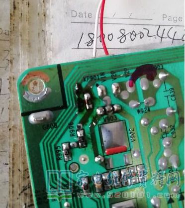 接修一台32英寸海信液晶电视,故障表现为开机屏幕一闪就灭,怀疑灯条问题,用灯条测试仪检测,灯条能亮,以前看帖子说不能完全相信测试仪,于是果断拆屏,结果灯珠全好,又老实的恢复装机,然后检查高压保护电路的2个514电阻和1个214电阻,结果,结果还是好的,看看拆下的电阻下面都有胶,以前看过网上说发财胶的案例,果断用刀片划一下,焊好电阻试机,一切正常。