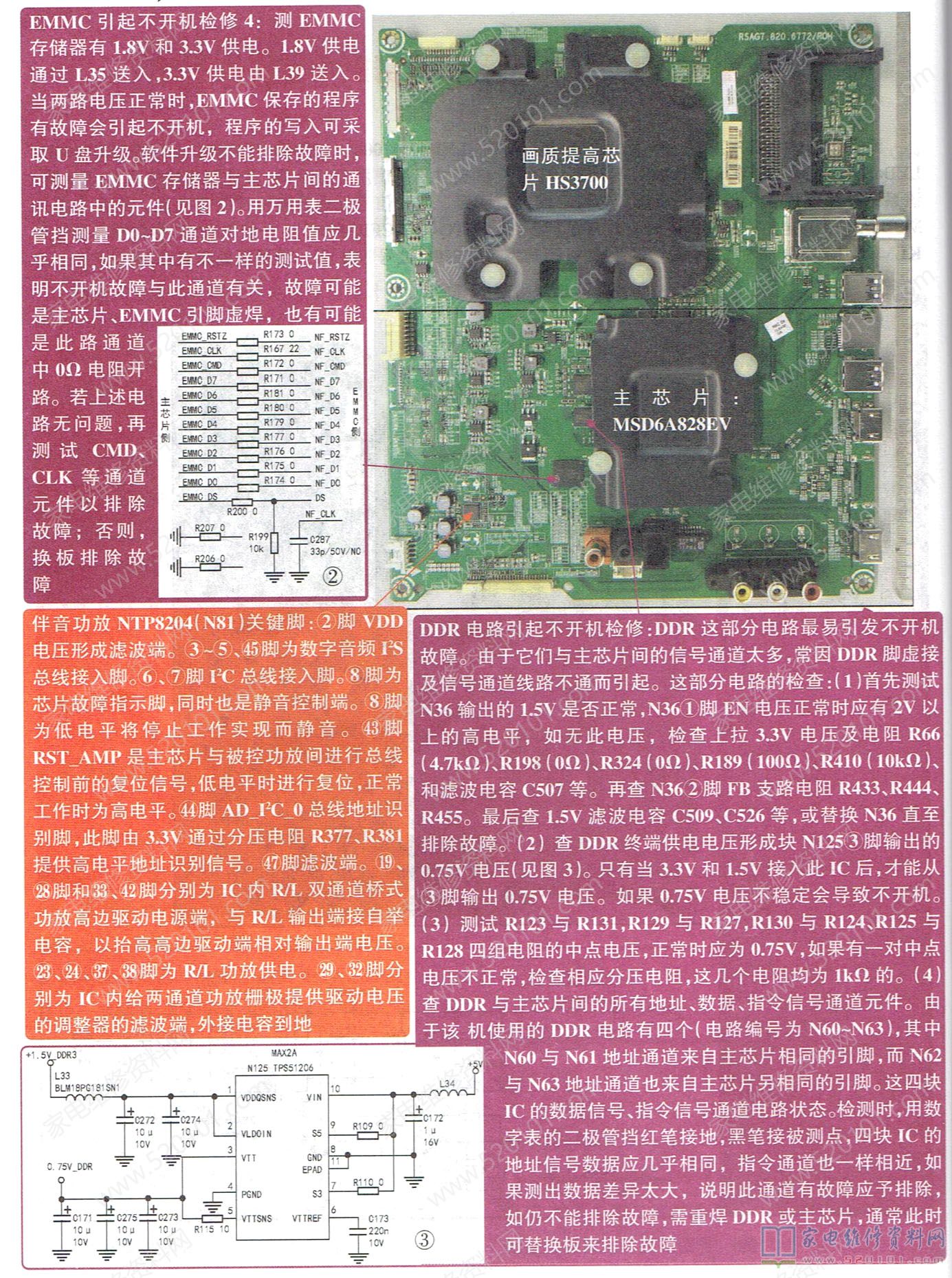 海信MU7000U系列产品是指型号为LED43M7000U、LED50MU7000U、LED55MU7000U、LED65MU7000U、LED70MU7000U等产品,其中除43英寸不是使用ULED屏,其他型号均使用ULED屏。该系列产品使用MSD6A828EV超级芯片,集成有图像、声音信号处理及整机控制等功能。配合主芯片MSD6A828EV电路中还使用了四块DDR3 (型号为H5TQ4G63CFR-RDC)、一块EMMC存储器( 型号为KLM4GIFE3A-A001)-块数字伴音功放(型号为NTP8204,位号N81 )及一块画质处理HS3700。