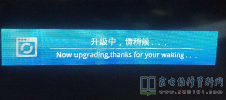 注意: (有的是开机按住遥控主页键或者菜单键)升级的时候屏幕显示这个等待10分钟左右。