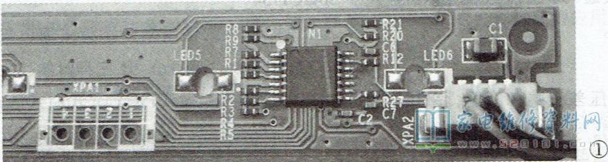 接修一台海信LED46K16X3D型液晶电视,晚上遥控关机后,第二天无法二次开机。根据故障现象分析,判断电源板待机电路有问题,但检测后确认电源板正常。测得主板上的+5VSTB电压正常,在二次开机时主板输出的开机信号电压为0V,怀疑主板待机电路有故障。因手头正好有一块正常的同型号主板,换上后试机,故障依旧,看来主板外围电路板有故障。逐一拔下3D转换板遥控接收板及触摸按键板试机,发现拔下触摸按键板后可以遥控开机,看来问题出在触摸按键板上。该机的触摸按键板型号为RSAG7.820.4206/ROH,用双面胶粘贴在面板框内侧面。用热风枪对其加热后取下,检查发现+3.3V滤波电容C1已短路,如图1所示。