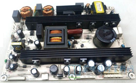 接修一台海信TLM42V68PK液晶电视,冷机启动至少需要15分钟以上,如果开机啦,半小时之内故障不会再出现。这种问题如果出现在3年以上的机子上面一般是电容或者稳压块的问题。开盖检查,电源板是
